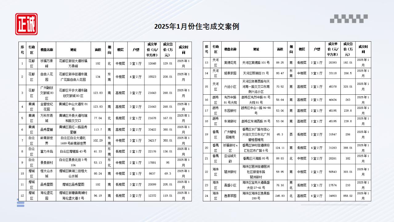 2025年1月廣州市房地產(chǎn)市場(chǎng)信息報(bào)告